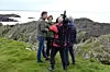 Alfred Ydstebø og ordfører i Kvitsøy kommune, Mirjam Ydstebø, for øvrig ikke i slekt, blir intervjuet av NRK Rogaland om hotellprosjektet på Kvitsøy. (Foto: Base Property)