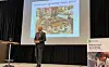 Direktør Atle Hovi i Beitostølen Resort, er sentral i det aller meste som skjer i fjellandsbyen, og gir honnør til Valdres Videregående skoler som tok kontakt og ønsket seg en fagdag på Beitostølen. Her snakker han til de 200 elevene fra alle 10. klasser i Valdres, fra scenen i Beitohallen, storstua til Beitostølen Resorts eget Radisson Blu-hotell. (Foto: Pressebilde/Beitostølen Resort)
