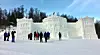 Slottet under bygging på Beitostølen. I vinterferien gjør de kinesiske arbeiderne siste finpuss på snøbygningen. (Foto: DestinasjonsKirurgene)