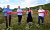 Det ble en strålende markering på Beitostølen sist lørdag, at reiselivsindustrien er i gang for fullt i fjellandsbyen. Blide ansikt både hos ordfører Odd Erik Holden, flankert av prosjektleder Tone Greni og produsent Bjørn B Jacobsen fra DestinasjonsKirurgene. (Foto: DestinasjonsKirurgene)