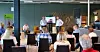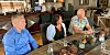Lunsj på Cafeén hos Barcraft på Beitostølen, før ettermiddagens program: Atle Hovi, Bente Bratland Holm og produsent for denne dagen på Beitostølen, Bjørn B Jacobsen fra DestinasjonsKirurgene. (Foto: DestinasjonsKirurgene)