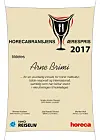 Arne Brimi er den andre som mottar Horecabransjens Ærespris, som er instituert av NHO Reiseliv, Bransjeforening for storkjøkkenleverandører i Norge (BFSN) og fagbladet Horeca. Prisen deles ut Smak-messen, som arrangeres hvert tredje år.