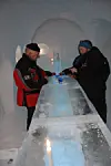 En stor ballong fylles med luft og blir dekket av snø ved hjelp av en stor snøfreser. Deretter vannes iglokonstruksjonen før den fryser til over natta. I løpet av drøy måned blir det til et spektakulært ishotell. For at konstruksjonen ikke skal kollapse, blir igloen stående over natta – med luft i ballongen. Slik herdes snøen og hotellet blir trygt og solid. Så bygges neste iglo.De mange små og store igloene blir til slutt til Alta Igloo Hotell, Norges første og største ishotell, som drives av selskapet Sorrisniva.