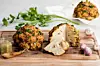 Harissabakt blomkålhode med pinjekjerner og mandler. (Foto: Morten Holt)