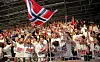 Norske fans på tribunen i Budapest. (Foto: Morten Holt)