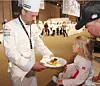 Hedda Davidsen får ta en titt på pappas fiskerett. (Foto: Morten Holt)