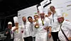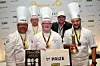 Sentrale personer bak Norges triumf i Bocuse d'Or Europe i Torino. Fra venstre president i Bocuse d'Or Norge, Bent Stiansen, coach Gunnar Hvarnes, commis Håvard A. Josdal Østebø, daglig leder for Stiftelsen Bocuse d'Or Norge, Arne Sørvig - og hovedpersonen, Christian A. Pettersen. (Foto: Morten Holt)
