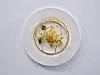 Fra det Christian A. Pettersen serverer i dag: Golden egg and castelmagno cheese – gullegg og castelmagno-ost. (Foto: Tom Haga)