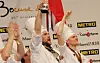 Det norske teamet på podiet i Lyon i 2017 sammen med den tidligere franske vinneren Regis Marcon. (Foto: Morten Holt)