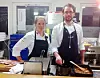 Ørjan Johannessen og commis Julie Ekse Jenssen i treningskjøkkenet i Sandefjord. (Foto: Privat)