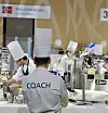 Danmark, som vant de forrige utgavene av Bocuse d`Or, er oigså i gang i boks 4 i dag. Til høyre Italias kjøkken. (Foto: Printscreen, WEB-TV, Bocuse d`Or)