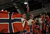 Den norske fansen på tribunen i Brüssel høres godt like før Ørjan Johannessen skal leveres sin første rett. Det norske heiagjengen er uten tvil den som skaper mest røre på tribunen! (Foto: Impuls)