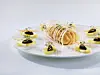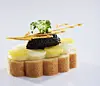 Kamskjell kosho (japansk peppersaus) med pepperrot og østersperle.