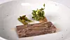 Fransk sylte av restekjøtt fra arktisk kje med grov sennep, norsk sylteagurk og nystekt flatbrød på urkorn.