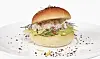 Kjøllefjordburger av kongekrabbe med vinterlagret norsk kålrot fra Porsgrunn og en litt småsterk mayo.