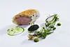Jeg har valgt å lage seien på en klassisk måte, med cruton og snegler. Snegler er en råvare som er sett på som merkelig i Norden, men skaper en god jordtonet smak opp mot det sarte fiskestykket og den gylne sprøheten fra brødskorpen. Løk i variasjon og en vinagrette med grønnkål og friske vekster. Da seien har en ganske dyp smak, har jeg laget et garnityr med en saltet agurk med mineralsterk kaviar på som en av garnityrene, som vil blande seg godt inn i sausen».