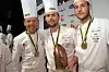 Coach Odd Ivar Solvold, kokk Ørjan Johannessen og commis Jimmy Øien etter bronsemedaljen i Bocuse d'Or Europe i Stockholm i mai i fjor. (Foto: Morten Holt)