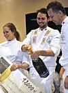 Odd Ivar Solvold (til høyre) spretter champagnen sammen med Ørjan Johannessen og commis Julie Ekse Jenssen etter seieren i Bocuse d'Or Europe i Brussel i 2012. (Arkivfoto: Impuls)
