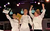 Melina Wang Brekke (commis), Andrea Svendsen og Reneé Fagerhøi (coach) jubler over gullet i Årets unge kokk 2021. (Foto: Morten Holt)
