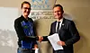 Stephen Meinich-Bache signerer avtalen. Til venstre Martin Hanem Bartnes. (Foto: CNH)