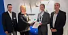Erik Mowinckel (fra venstre) og Nina Bruun Taule fra Compass Group, og Ole Kjærsgaard og Andreas Norvik fra NRK. (Foto: Lars Haatveit Jenssen)