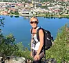 Hotelldirektør Ellen Løvold oppe i Øyfjellet med Fru Haugans Hotel i bakgrunnen. (Foto: Fru Haugans Hotel)