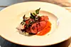 Røkt andebryst med beter, valnøttmajones og trøffel. (Foto: Inger Johanne Stenberg)