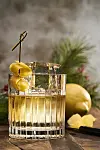 Fremgangsmåte: 1. Legg den store isbiten i et tumblerglass. 2. Bland alle ingrediensene forsiktig i glasset. 3. Avslutt med å tviste sitronskallet som pynt og server.