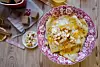 Fremgangsmåte: Pisk sammen egg, vann og melk. Smelt honning og smør og pisk inn i blandingen sammen med salt og mel. Varm en panne og smør den med smør. Ha et tynt lag med røre i pannen og stek gyllen på begge sider. Fold hver pannekake i fire og legg til side. Smelt smør i en panne og tilsett appelsinskall og -juice. Kok inn til halvparten, trekk pannen av platen og tilsett Jack Daniel’s Tennessee Honey. Legg pannekakene i pannen og la dem varmes i sausen. I en panne smelter du honningen. Rist skåldede mandler til de er gylne. Tilsett Jack Daniel’s Tennessee Honey og et dryss flaksalt. Grovhakk og dryss over de lune pannekakene.