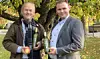 Kjøkkensjef på Thon Hotel Lofoten, Henrik Siversson, og eplemost-produsent Kari Nyhuus Holtskog. (Foto: Nyhuus Gard)