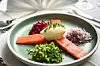 De største utfordringene med denne retten er det salte og røkte kjøttet, samt sødmen fra rotmosen. Som med rakfisken var Champagnen en svært vellykket kombinasjon.