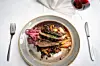 Hjort med syltet rødløk, bakte gulrøtter og kantareller