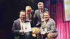 Best i klassen: Stein-Erik Treverket (forrest til venstre) og Kristian Strøm fra Solera mottok prisen i Svolvær mandag kveld. Bakerst: Innkjøpsdirektør Morten Karlsen i NHO Reiseliv (t. v) og Øyvind Frich, leder av innkjøpsutvalget i NHO Reiseliv Innkjøpskjeden. (Foto: NHO Reiseliv)