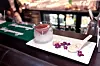 Garnityr: Rektangulære plater med plommer, formet som fjær, litt bronsepulver for å gi ekstra farge og plommeskum.