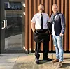 Restaurantsjef Boas Boasson (til venstre) og franchisetager Ronny Sigbjørnsen utenfor den nye McDonald's- restauranten i Sola. (Foto: McDonald’s Sola)