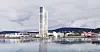 Det planlagte Fauske-hotellet vil rage 76 meter opp i lufta, og blir et markant landemerke. (Illustrasjon: Snøhetta)