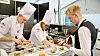 Kokker fra Nannestad videregående skole i aksjon på TineCup. Til venstre kokk Pål Jetmundsen hos Tine Partner. (Foto: Nannestad videregående skole)