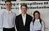 Maria Suarez og Andreas Gøbel fra Statholdergaarden vant Norgescup for servitørlærlinger 2017. Her sammen med lagleder Jan Morten Gjesdal.