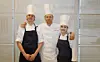 Runa Kvendseth (til høyre) og Tord Johnseter (til venstre) på Statholdergaarden er Norges beste kokkelærlinger. Her sammen med lagleder Torbjørn Forster etter seieren i dag.