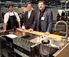 Atle Jakobsen, Eskild Kellmer og Rolf Domstein på Domstein Sjømats stand, der en håbrand på 84 kilo vekker oppsikt i fiskedisken. Les mer i neste utgave av magasinet Horeca. (Foto: Morten Holt)