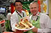 Vegetar og kjøttfritt på menyen hos Findus. Terje Gussiås og Bent Enoksen viser fra Quorn-burgeren. Les mer om Findus’ produkter i neste utgave av magasinet Horeca. (Foto: Morten Holt)