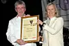 Arne Brimi fikk bransjens høyeste utmerkelse, Horecabransjens Ærespris, på Smak 2014. Her sammen med juryleder Kristin Krohn Devold. (Foto: Morten Holt)