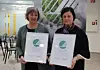 Anita Winsnes, daglig leder i Stiftelsen Miljømerking og Mona Dehli, direktør for Business Unit I, Single Services i Coor Norge. (Foto: Coor Norge)