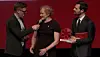 Heidi Bjerkan og deler av Credo-laget på podiet i Århus. (Foto: Printscreen)