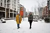 Ida Gravdal Haldorsen, leder for Bjørvikaforeningen og administrerende direktør Synnøve Lyssand Sandberg i OSU, på besøk på den populære Stasjonsallmenningen i Bjørvika. (Foto: Katrine Lunke)