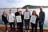 Godtlevert, Orkla, Findus og Mills ble premiert med årets plastløftepriser. Fra venstre: Godtlevert (Andrea Hagen og Bjørnar Waage), Orkla (Bengt Johannesen og Xenia Pisneacova), Findus (Pål Rusten) og Mills (Bente Jachwitz og Ole Kristian Vestbekken). (Foto: Grønt Punkt Norge)