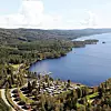 Finnskogen Turist- og Villmarksenter ligger i Skasenden helt i nordenden av innsjøen Skasen i Hedmark. (Foto: Finnskogen Turist- og Villmarksenter)