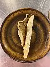 Fritert tørrfiskskinn på fat. (Foto: Matmerk)