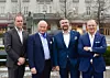 Fra venstre Helge Krogsbøl (Pandox), Christian Ringnes (Eiendomsspar), Svein Arild Steen Mevold (administrerende direktør i Scandic Norge) og Frank Fiskers (konsernsjef Scandic).