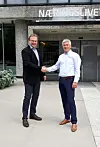 Jan-Erik Pavels Smith i Greenway Norge (til venstre) og innkjøpsdirektør i NHO Reiseliv Innkjøpskjeden, Morten Karlsen. (Foto: Greenway- Norge/NHO Reiseliv))